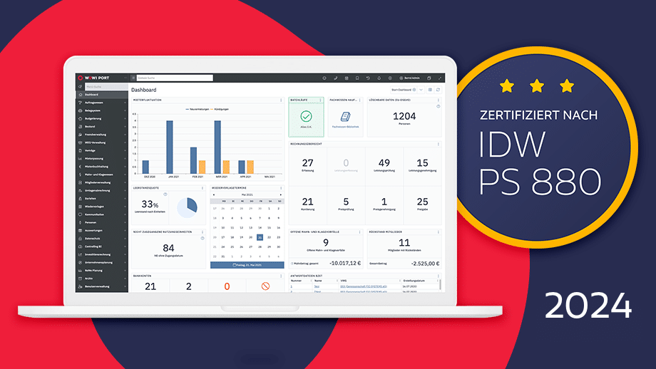 Die IDW PS 880-Zertifizierung ist der maßgebliche Prüfungsstandard für Softwareprodukte. Sie garantiert unseren Kunden, dass WOWIPORT unter Einhaltung hoher Qualitätsstandards entwickelt wird. Die Wirtschaftsprüfer haben die korrekte Buchführung mit WOWIPORT bestätigt und sämtliche bereits seit 2022 geprüften Systembereiche erneut begutachtet.